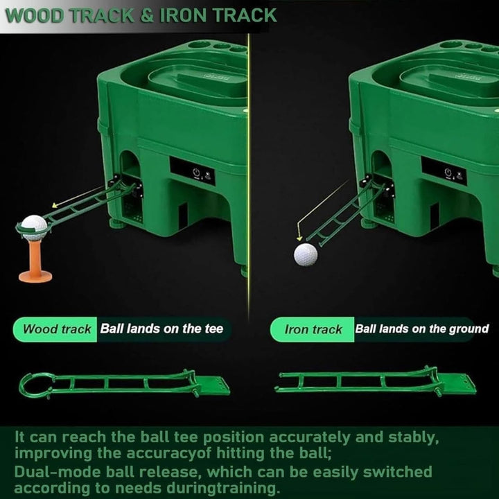 Wood-club mode drops the ball onto a tee; iron-club mode drops the ball on the ground. Height-adjustable tripod with level gauge ensures stability across various training environments.