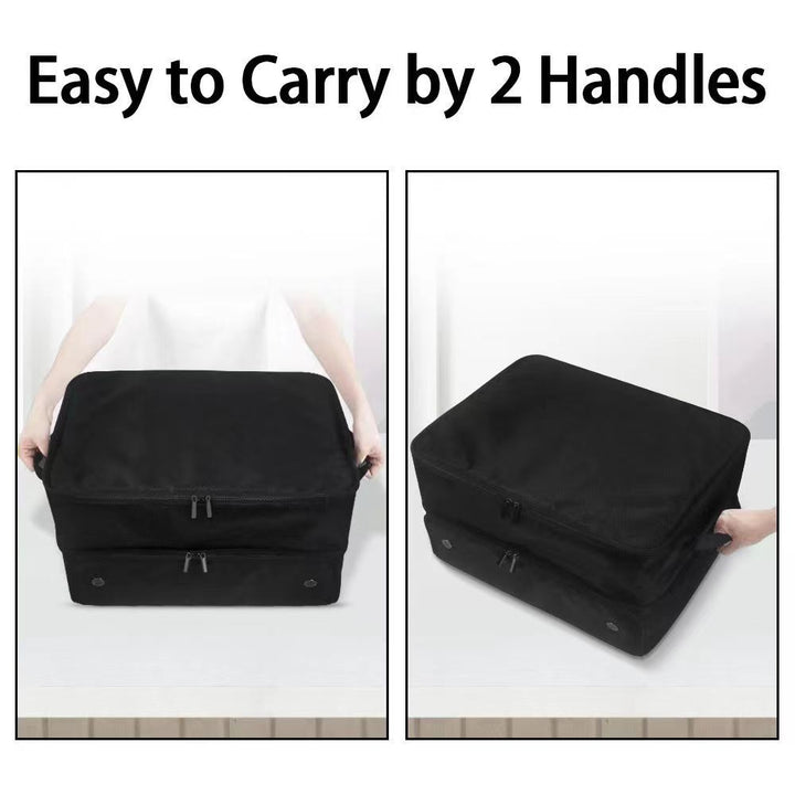 Upgraded design features a dedicated ventilated compartment for 2 pairs of shoes (up to size 11). The breathable polyester base promotes airflow and is easy to clean.