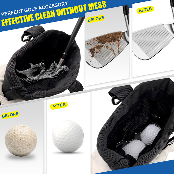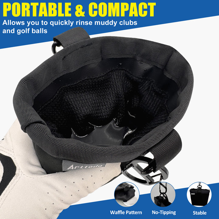 Upgraded design can consistently store water, which enables you to rinse your muddy clubs and balls all in seconds!