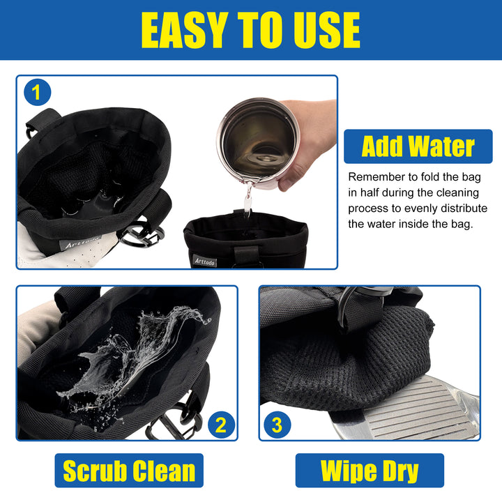 Just add a bit of water to this pouch before your round, insert your golf club into the pouch, gently scrub it and it is done!
