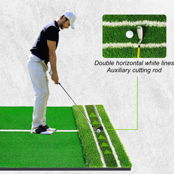 • Dual White Alignment Lines: Two crisp white lines are printed on the mat surface to guide your foot positioning and swing path, helping you perfect your stance and execute precise chip shots with consistent accuracy.