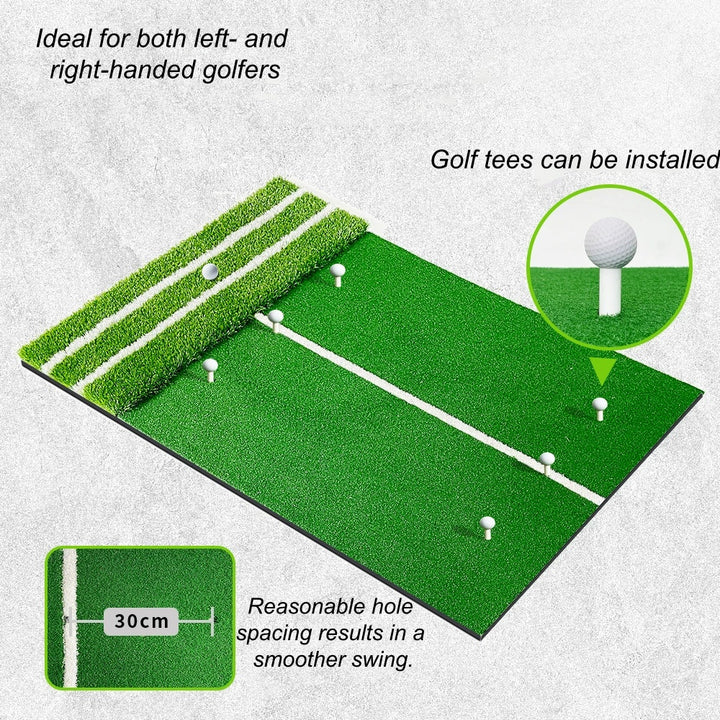 • 6 Pre-Set Tee Holder Holes: Equipped with six strategically placed holes for rubber tees, making this mat the ideal training tool for both right-handed and left-handed golfers to practice drives and fairway woods.